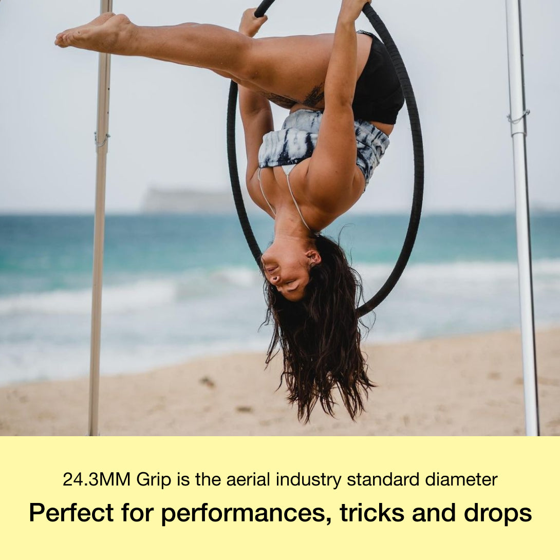 The 24.3mm Grip is the aerial industry standard diameter of tubing. It is perfect for performances, tricks, and drops. Suitable for aerialists who are comfortable with the smaller handgrip.