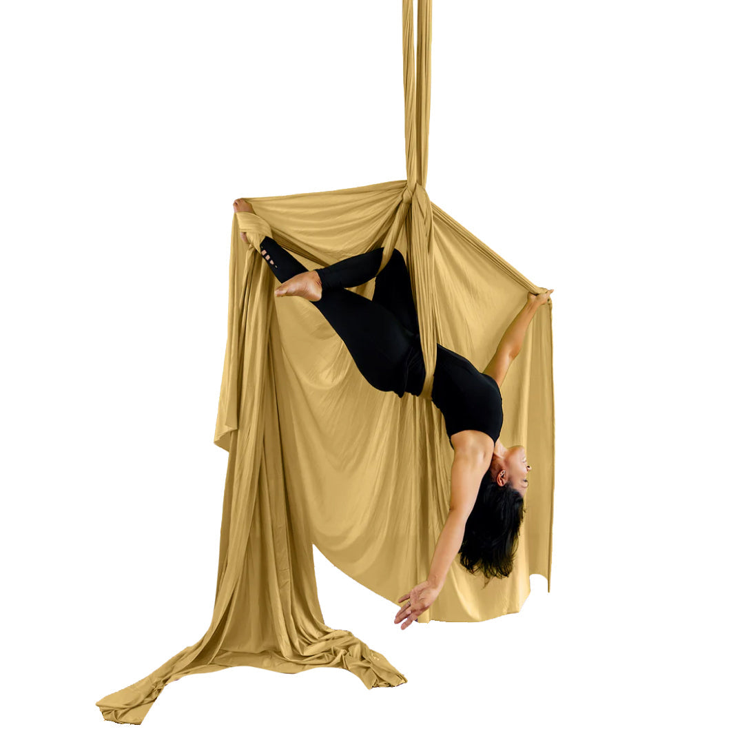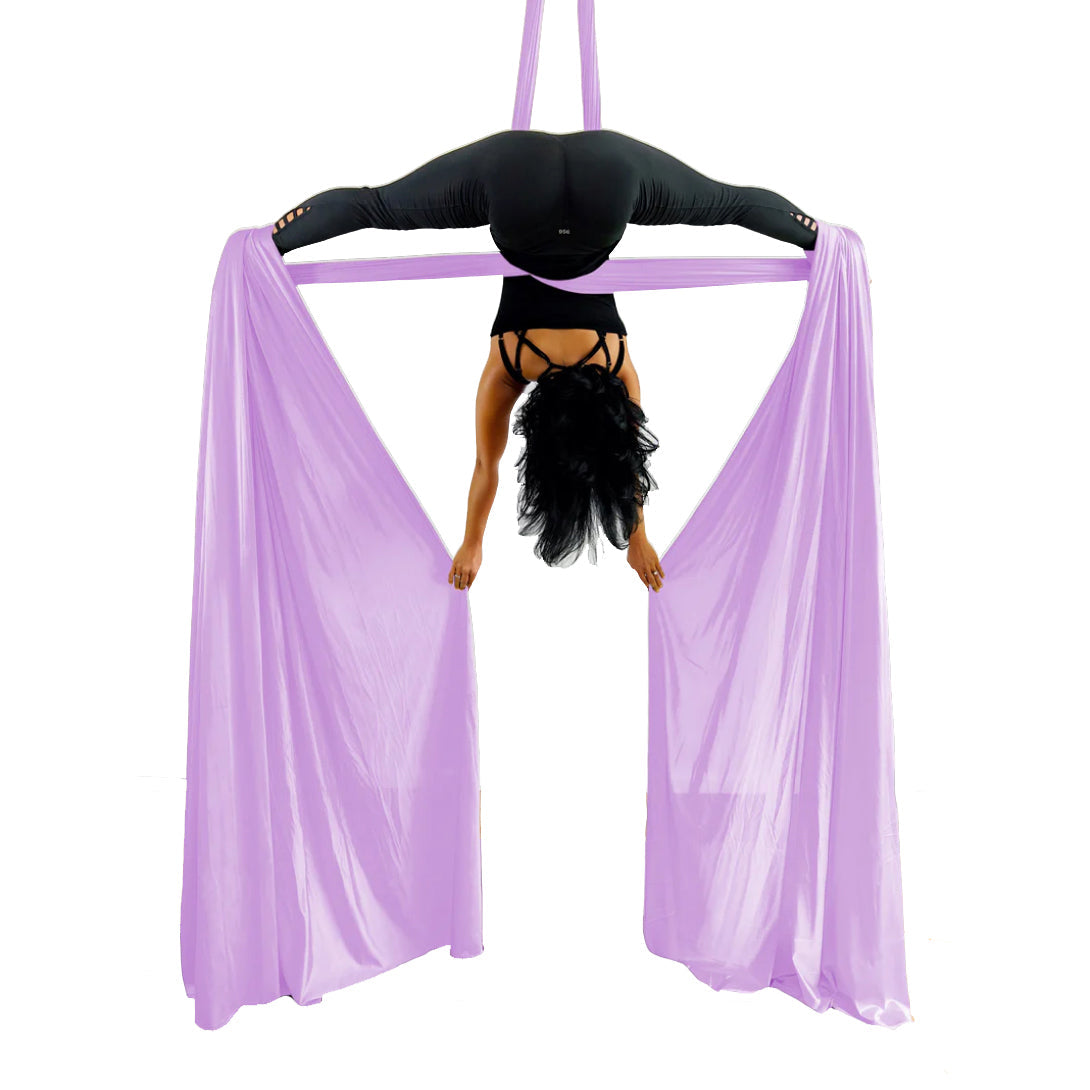 Fabric stretch refers to the amount of “give” that your fabric offers you in the air. For beginners, we recommend a low-stretch fabric that provides plenty of support for climbs. Medium stretch fabric is preferable for experienced aerialists performing drops and other advanced skills.