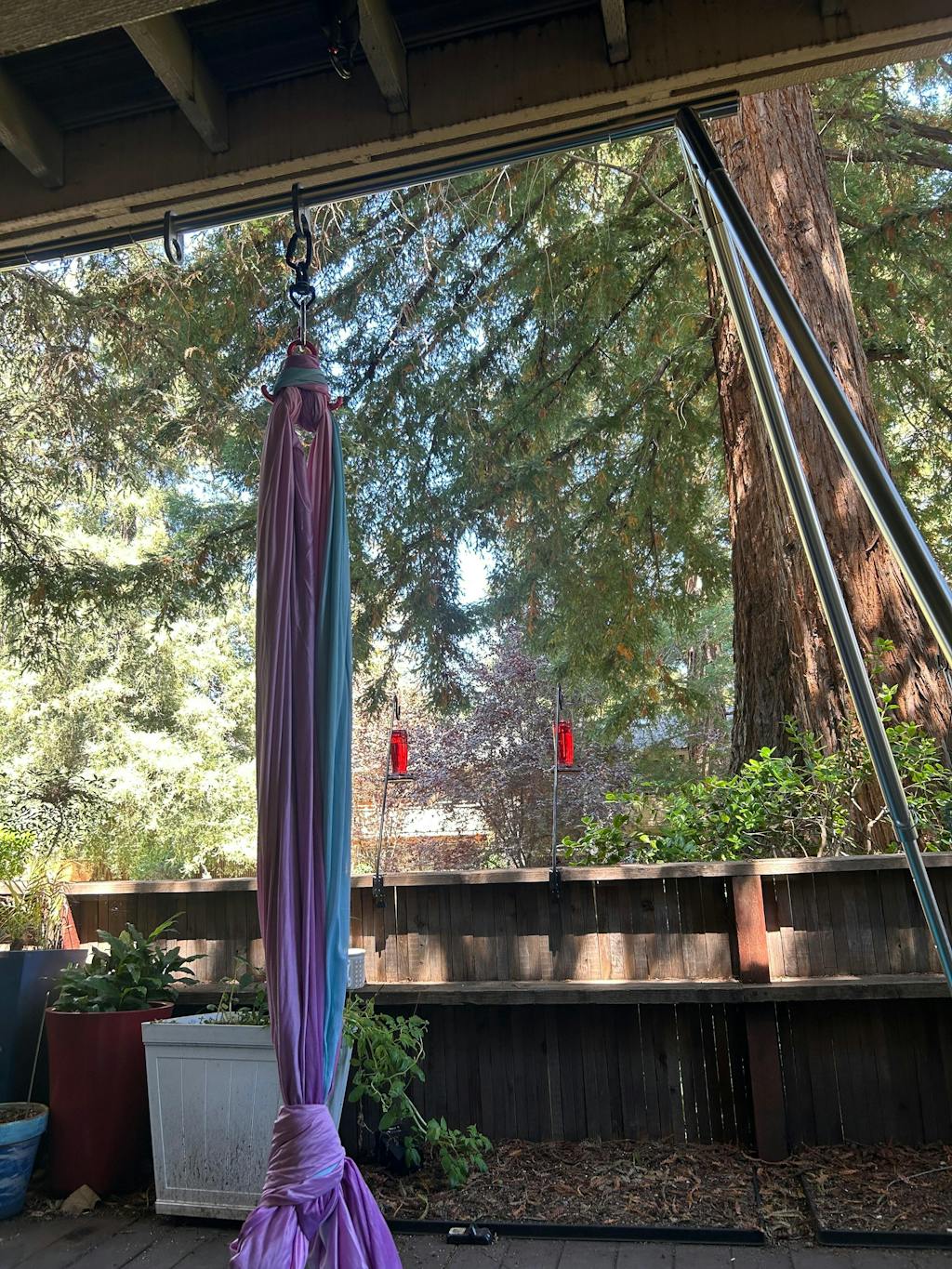 I love my rig! I just moved and have a yard now, and I'm about an hour from the nearest aerial studio, so I need a way to condition and practice at home between classes. This rig is perfect! It takes some getting used to since the legs have some give for shock absorption, and I've only used fixed points on ceilings previously. But as long as you make sure the feet are firmly on the ground and the legs are the proper distance, this is sturdy at its full height. I've used it for split silks conditioning and low moves, and for lyra.