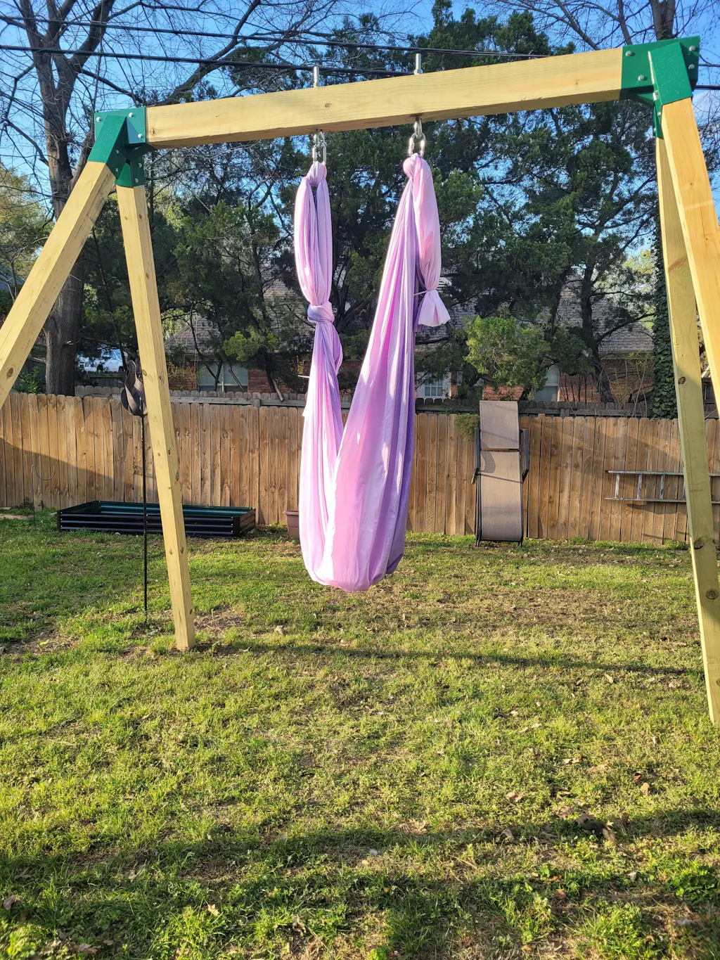 Not sure where to hang your silks? Try our portable A-Frame Rig. We recommend getting the 10-yard length for use with our portable rigs.
