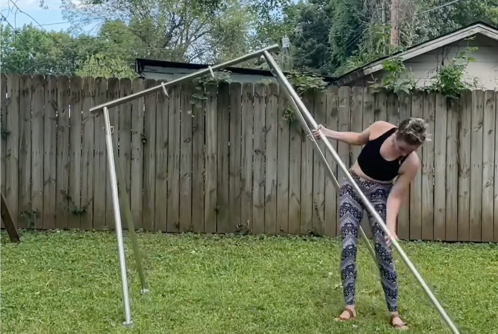 To attach your silks, trapeze, hammock, hoop, or Lyra, simply attach your gear directly to one of the two included top bar connectors on the aerial rig. These connectors are not found on cheaper rigs on the market. They make the most of limited heights and can be moved so that you can use the A-frame for multiple disciplines.