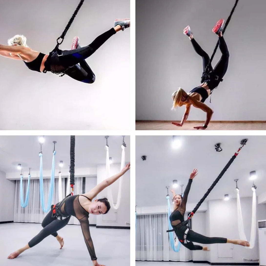 These sets are intended for ground based bungee fitness classes, and this product is not suitable for bungee jumping, full suspension, or for use as a swing.