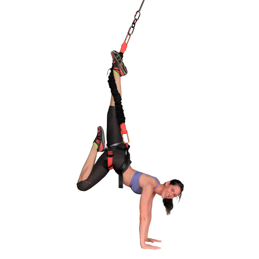 This Bungee Fitness Set is great for HIIT training, low-impact cardio, and plyometric exercises. Improve your agility, increase your speed, strengthen your balance, and have a blast while performing tricks that defy gravity!This set-up comes with a padded harness, bungee cord, daisy chain to adjust the height, swivel so that you can hop and spin, and slings to rig to an overhead beam or hook.